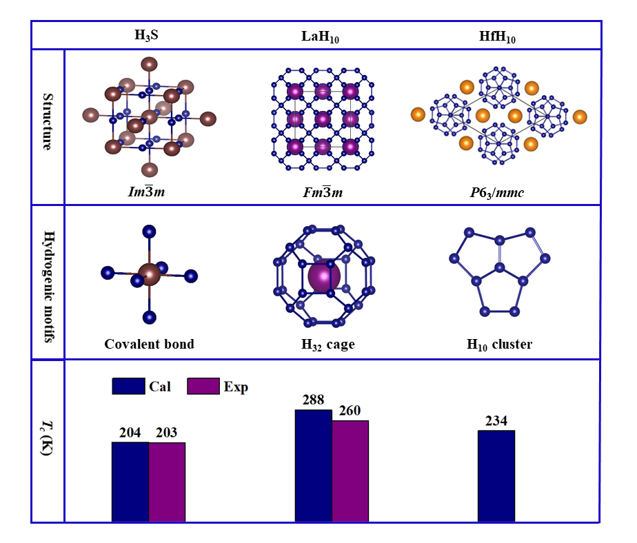 富氢化合物可以在实验室压力下实现金属化,是潜在的高温超导体,备受关注。崔田课题组于2014年首次报道了共价金属性氢化物H3S在200万大气压下的超导转变温度高达200K,随后被实验证实,激发了人们在富氢材料中寻找室温超导体探究的热情。2019年,理论预测和实验研究发现“笼状”氢化物LaH10的超导温度达到250~260K,坚定了寻找室温超导体的信心。近日实验上在高压下合成了碳质硫氢化物,在288K的室温条件下实现了零电阻,让人们看到了室温超导的曙光。