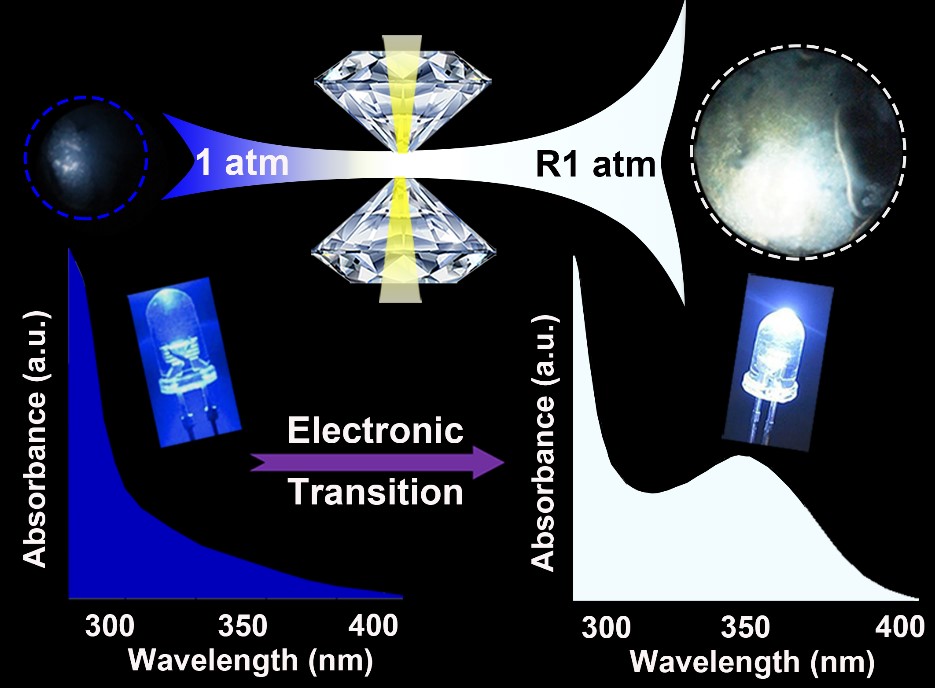 超硬材料国家重点实验室肖冠军教授和邹勃教授课题组另辟蹊径,利用高压对物质晶体结构和电子结构的调控,在若干传统无光材料中成功实现了高品质发光,进而提出了“压力诱导发光PIE”的新概念,系列研究成果引起了人们的广泛关注,在压力传感、压力开关和防伪等领域具有潜在的应用前景。然而,高压可逆性(即具有高发光效率的高压亚稳相不能稳定至常压存在)极大地阻碍了这类材料的实际应用。