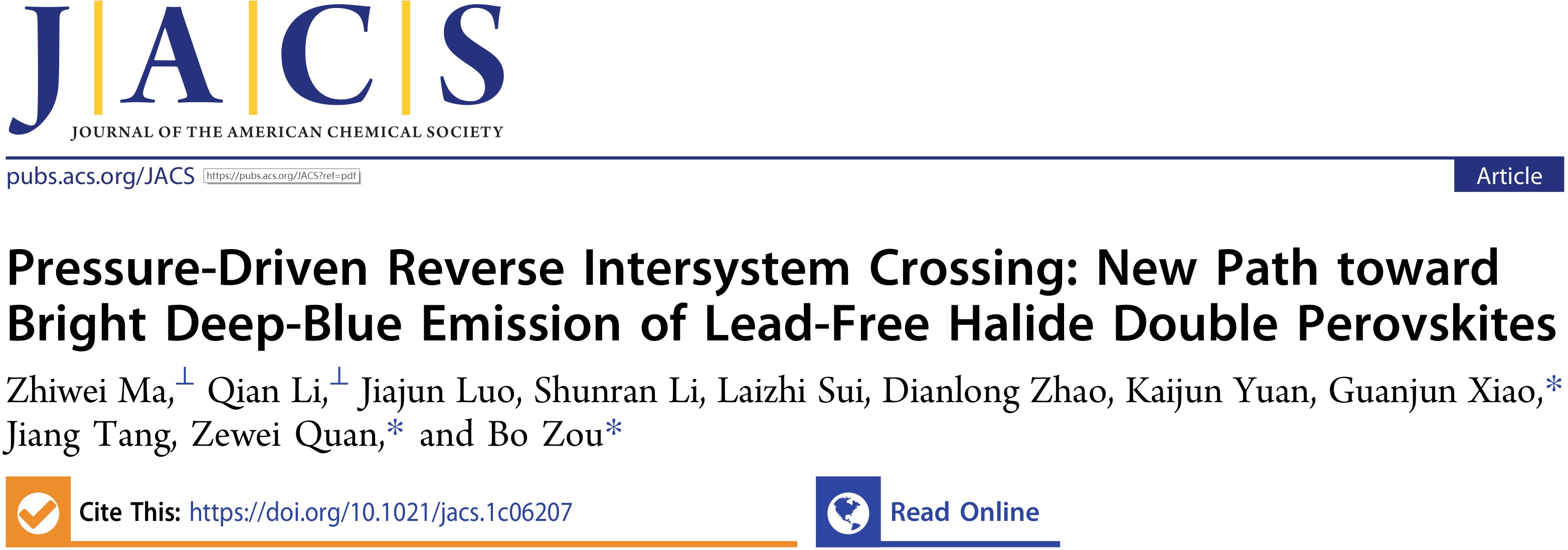 相关工作以“Pressure-Driven Reverse Intersystem Crossing: New Path towards Bright Deep-Blue Emission of Lead-Free Halide Double Perovskites”为题,发表在Journal of the American Chemical Society (DOI: 10.1021/jacs.1c06207)上。动漫巴士