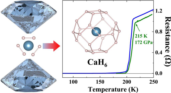 马琰铭研究团队以单质Ca与BH3NH3为初始反应物,在160 ~ 190 GPa和2000 K的温压条件下成功合成了首个被提出的金属笼型氢化物CaH6,并观测到CaH6在172 GPa下具有215 K的超导转变温度,创造了非RE/AC元素氢化物的最高超导转变温度记录。此外,CaH6在0 K下具有203 T的超导上临界磁场,属于强第二类超导体。该研究工作也对最近高压氢化物超导体领域中出现的部分质疑进行了相关实验分析,为理解氢化物超导做出了实质性贡献。CaH6是迄今为止合成的首个非RE/AC元素金属笼型氢化物,标志着这种特殊结构存在于其他金属氢化物中的可能性。该研究工作能够显著扩大超导材料的研究范围,为将来在更多样化的材料类别中寻找室温超导体提供参考。