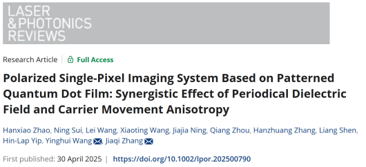 近日,动漫巴士 王英惠教授联合材料学院张佳旗教授等人利用DVD的周期性结构,成功制备出具有偏振特性的CsPbBr3量子点薄膜光电探测器,并实现了单像素偏振成像系统。这一创新不仅揭示了周期性介电场与载流子运动的协同效应,还为量子点材料在偏振成像领域的应用开辟了新路径。相关研究成果以“Polarized Single-Pixel Imaging System Based on Patterned Quantum Dot Film: Synergistic Effect of Periodical Dielectric Field and Carrier Movement Anisotropy”为题发表在《Laser & Photonics Reviews》上。