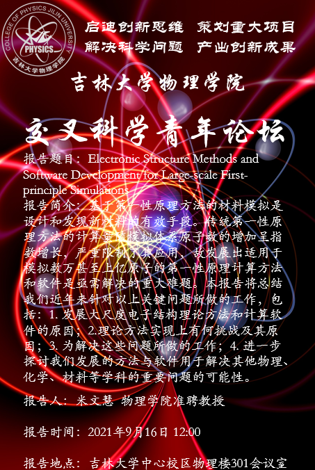 报告题目: Electronic Structure Methods and Software Development for Large-scale First-principle Simulations