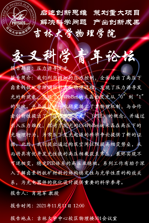 唐敖庆学者卓越教授(B)、博士生导师。中国化学会高压化学专委会委员、吉林省青科协理事、SmartMat、The Innovation和Energy & Environmental Materials青年编委。2013年于动漫巴士