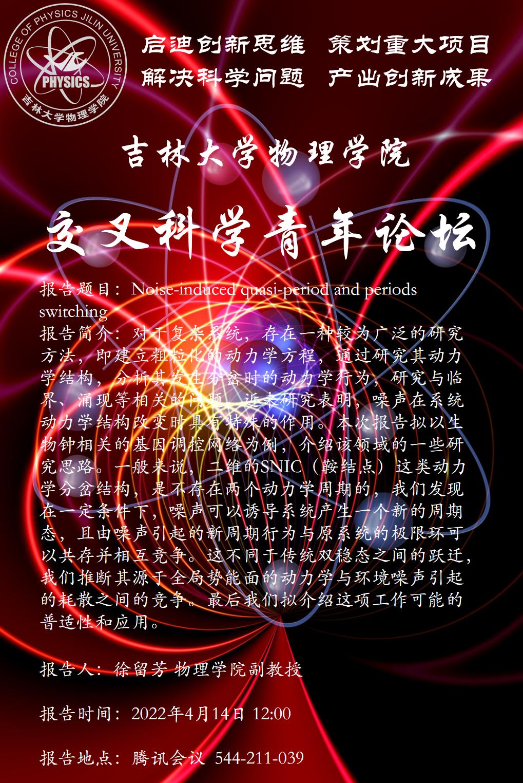 对于复杂系统,存在一种较为广泛的研究方法,即建立粗粒化的动力学方程,通过研究其动力学结构,分析其发生分岔时的动力学行为,研究与临界、涌现等相关的问题。近来研究表明,噪声在系统动力学结构改变时具有特殊的作用。本次报告拟以生物钟相关的基因调控网络为例,介绍该领域的一些研究思路。一般来说,二维的SNIC(鞍结点)这类动力学分岔结构,是不存在两个动力学周期的,我们发现在一定条件下,噪声可以诱导系统产生一个新的周期态,且由噪声引起的新周期行为与原系统的极限环可以共存并相互竞争。这不同于传统双稳态之间的跃迁,我们推断其源于全局势能面的动力学与环境噪声引起的耗散之间的竞争。最后我们拟介绍这项工作可能的普适性和应用。