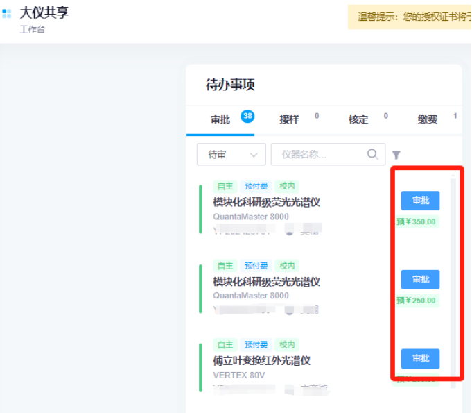 1.使用指导老师账号登陆实验室综合管理平台,并进入仪器共享管理界面。