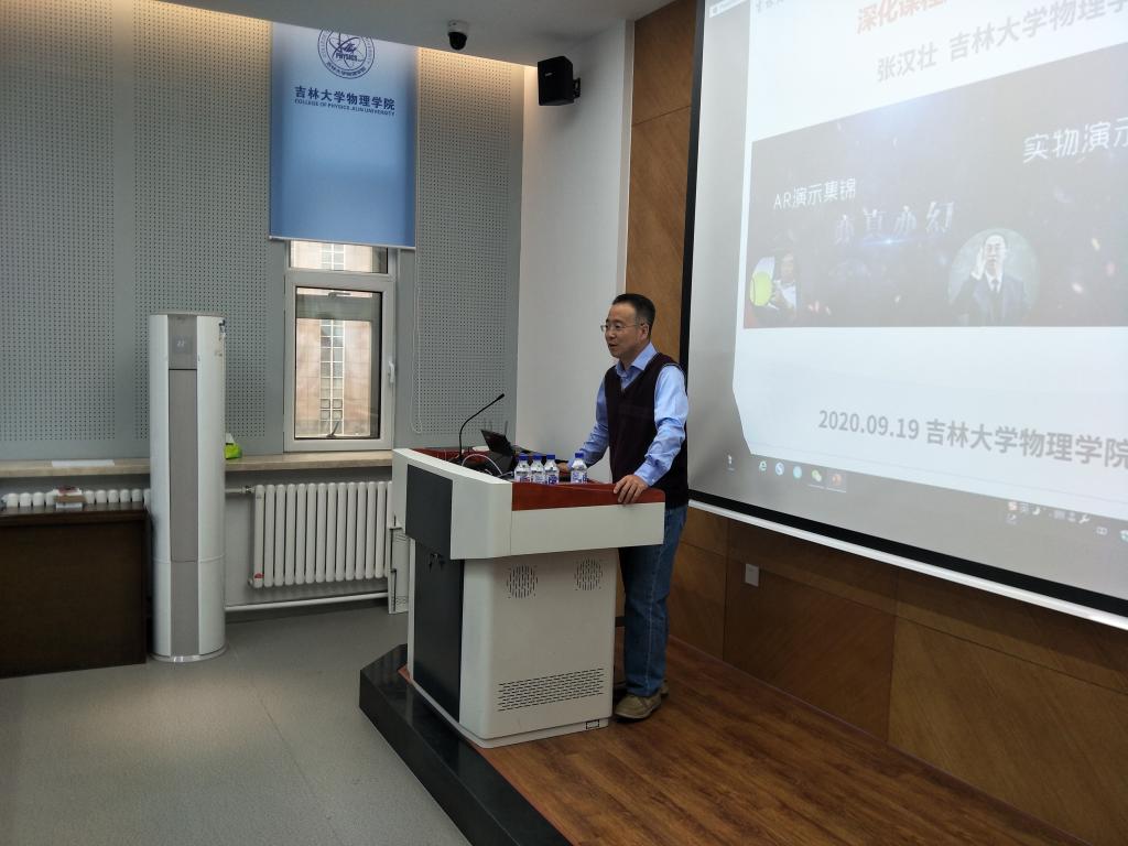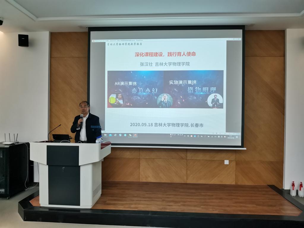 于2020年9月18日在物理楼333举办了本学期教学发展论坛系列活动之一——“深化课程建设·践行育人使命”主题教学研讨会。本学期教学发展论坛包括课程思政教学研讨会、理论课研讨会、实验课研讨会、课程建设研讨会、师生互动促进会等五大板块。本次教学研讨会由国家级领军人才-教学名师张汉壮担任主讲人,学院党委书记孟文卓、副院长王海军以及有本科课程任务的教师出席会议。
