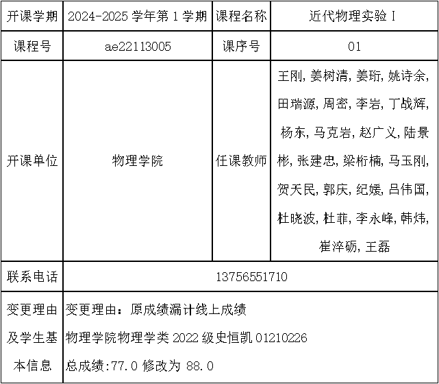 根据《关于进一步明确本科生课程考核等有关问题的通知》(校教字[2018]47号)文件有关精神,现对以下课程成绩更正进行公示: