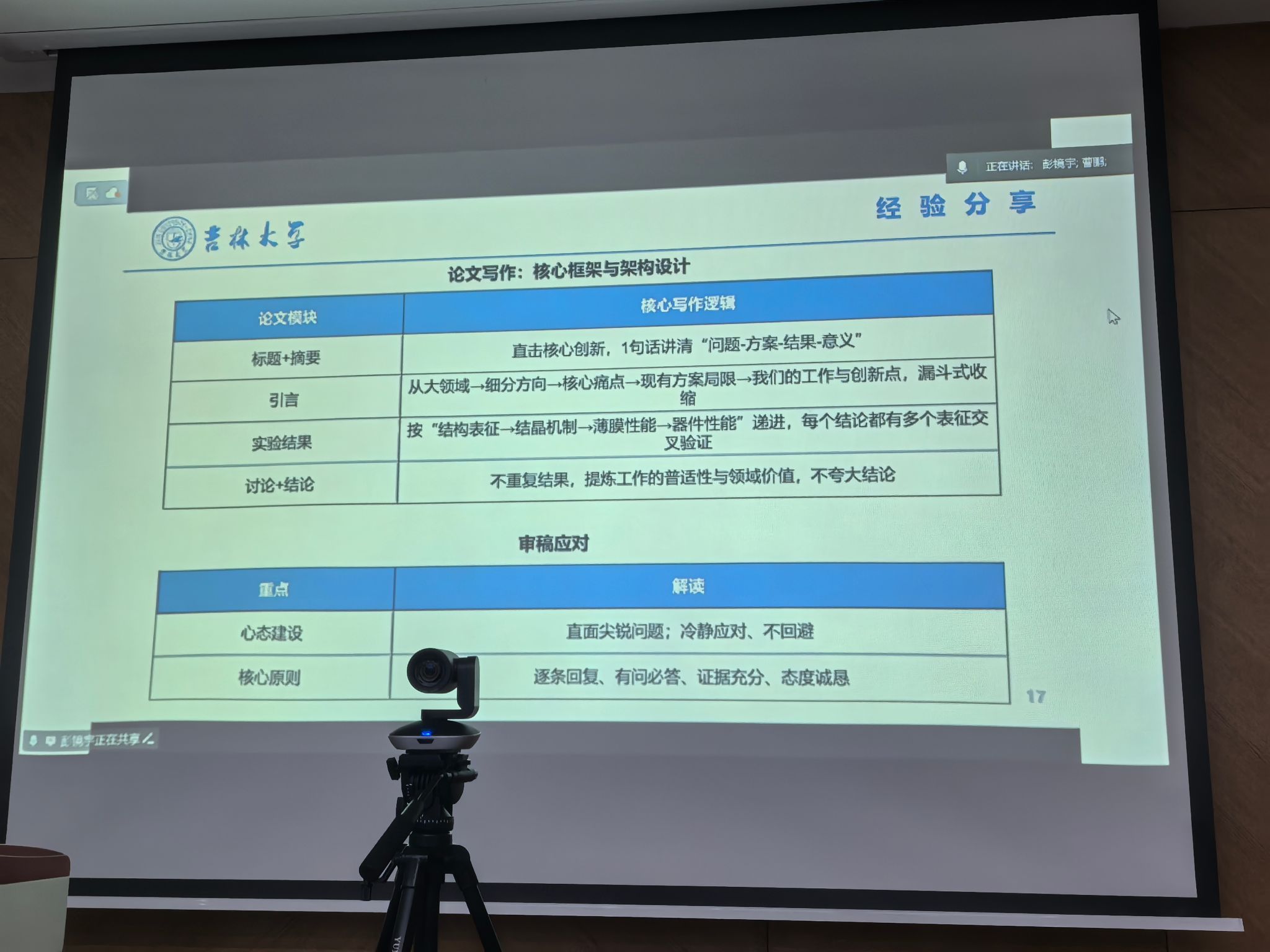结合自身顶刊论文写作与多年科研实践经历,彭镜宇博士从标题摘要、引言、实验结果到讨论结论,全方位拆解了高水平学术论文的逻辑架构与写作技巧,着重强调“直击核心创新、漏斗式收缩逻辑、多表征交叉验证”等关键要点,为同学们撰写顶刊论文提供了清晰思路与实操方法。针对论文投稿后的审稿应对难题,她分享了“直面问题、冷静回应”的心态建设技巧,以及“逐条回复、有问必答、证据充分、态度诚恳”的核心应对原则,为同学们高效应对投稿审稿环节给出了可落地、可操作的实践指南。