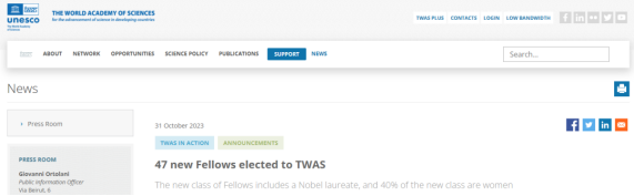 近日,发展中国家科学院(TWAS)公布新增院士名单,共增选出47位发展中国家科学院院士。本次增选的院士中有6位来自中国大陆,其中吉大物理1982届校友迟力峰教授成功入选。热烈祝贺迟老师!