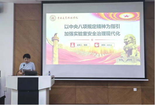 在讲解过程中,杨景将实验室安全管理与深入贯彻中央八项规定精神相结合。他强调,中央八项规定精神所倡导的务实、清廉、节俭等作风要求,在实验室安全管理中同样具有重要的指导意义。务实,就是要脚踏实地做好实验室安全管理的各项工作,不搞形式主义,不敷衍塞责;清廉,就是要坚决杜绝在实验室设备采购、项目审批等环节中出现违规违纪行为,确保权力在阳光下运行;节俭,就是要合理使用实验室资源,避免浪费,提高资源利用效率。