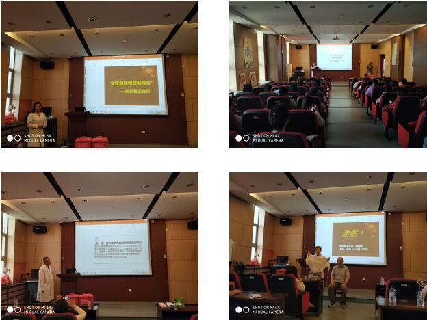 随后,杨翊研主任做了题目为《女性健康新理念》的讲座,讲座分两个部分展开,第一部分是普及预防宫颈癌的知识,第二部分是更年期综合症。通过杨主任深入浅出的讲座让师生意识到,提高自我保健意识,自觉养成良好的生活习惯,保持良好的精神状态,科学的进行生理和心理呵护,才会更好的保护自己,关爱自己。最后由护士长钟宪鹏现场演示、讲解急救包内每个用品的具体作用及使用方法。