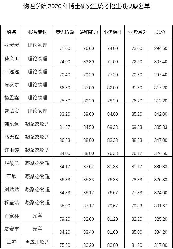 我院2020年博士研究生统考招生复试工作已经结束,现将拟录取考生名单进行公示(详见下表),公示期为:2020年6月24日-6月29日。