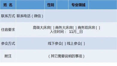 嘉宾也可直接填写下面表格,并在11月5日前将回执返回至邮箱:[email protected]。