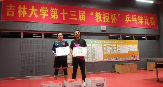 第十三届“教授杯”乒乓球比赛于2023年4月15-16日在中心校区宋治平体育馆乒乓球馆举行,比赛分为男子单打、女子单打、混合团体三项,我院在职教授共8人参赛。其中,苏雪梅教授所在的“中心校区队”取得团体冠军,卓仲畅教授所在的“颗粒队”取得团体亚军,王文全教授所在的“于平队”、龚依民教授所在的“东云队”取得团体第五名。苏雪梅取得女子单打第三名,卓仲畅取得男子单打第五名,龚依民、王文全取得男子单打第九名的好成绩。