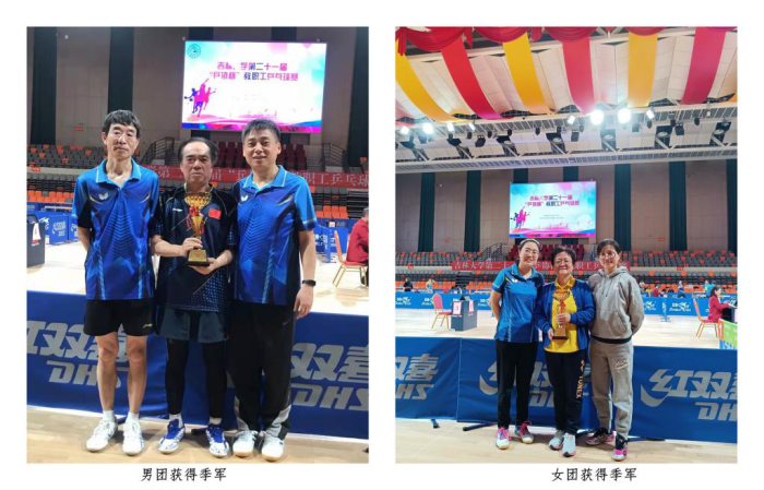 第二十一届“乒协杯”教职工乒乓球赛于2021年12月4日-5日在中心校区宋治平体育馆举行,我院乒乓球男子、女子代表队共12人参赛。队员们在比赛中激烈角逐、奋勇拼搏,获得男子团体季军、女子团体季军的较好成绩!