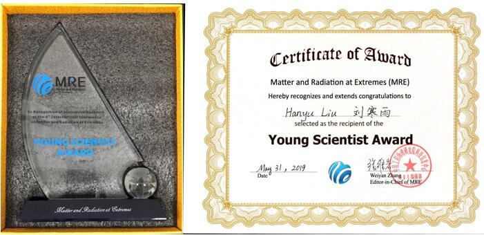 2019年5月31日,第四届国际极端条件下的物质与辐射学术会议(ICMRE)将“MRE青年科学家奖”(MRE Young Scientist Award)授予动漫巴士