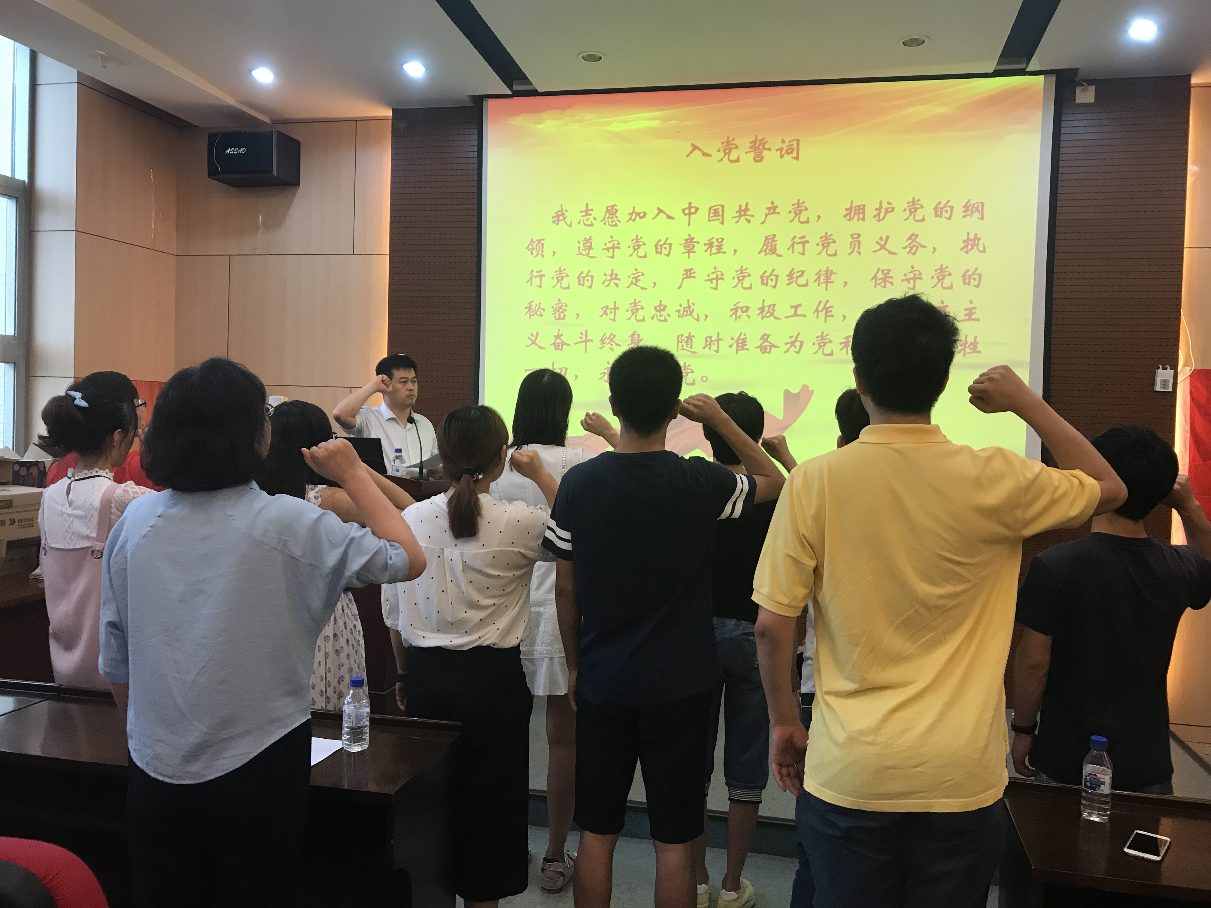 6月30日,我院于物理楼333室开展“庆祝建党九十六周年党员宣誓暨优秀党员表彰大会与专题党课”系列活动。全体教师党员、新发展学生党员与优秀学生党员代表参会,共100余人。会议由党委副书记孙长伦主持。