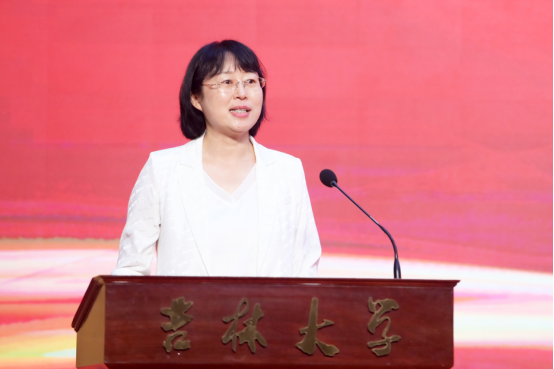 教师代表年桂君老师向全体毕业生致以美好的祝愿。她鼓励同学们勇敢面对生活中的挑战,保持兴趣和热情,以坚韧不拔的精神追求自己的梦想。同时,她也希望同学们能够始终保持感恩之心,回报社会、回报母校。