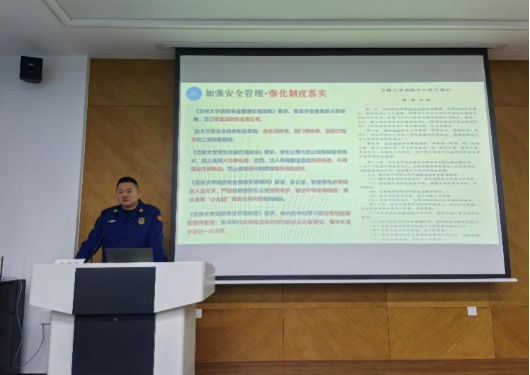 在防火安全知识讲座中,保卫处消防科董立明老师从强化安全意识、加强安全管理及落实安全制度三个方面展开讲解。他以校园火灾的常见诱因作为切入点,结合国内高校宿舍因违规使用电器、实验室操作不当引发火灾的典型案例,深入阐释了火灾的严重危害、初期扑救方法以及火场自救技巧。针对动漫巴士