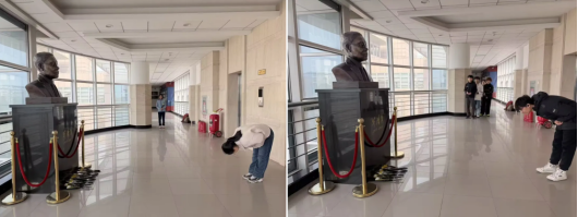 随后,全体师生依次上前,向先贤雕像深深鞠躬致敬。