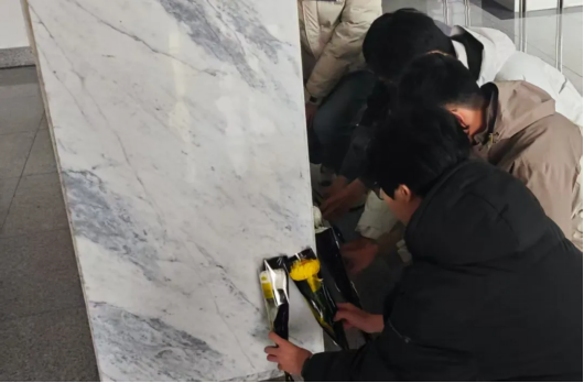 学生代表上前轻轻擦拭雕像,细致拂去雕像上的微尘,用实际行动表达对先贤的崇敬与缅怀。