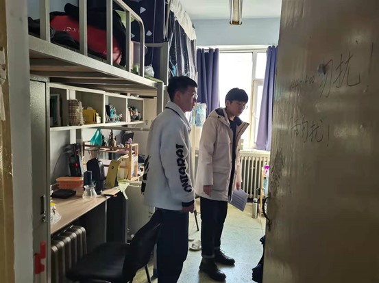 每次查寝前,部员都会做充分的准备工作,制定出查寝的最优路线,并商讨出最合适的查寝时间。查寝时,张羽老师、刘扬老师和王子璁老师都会对每间寝室逐一检查,并亲切的与每名同学进行交流沟通,询问同学近期学习生活状况。