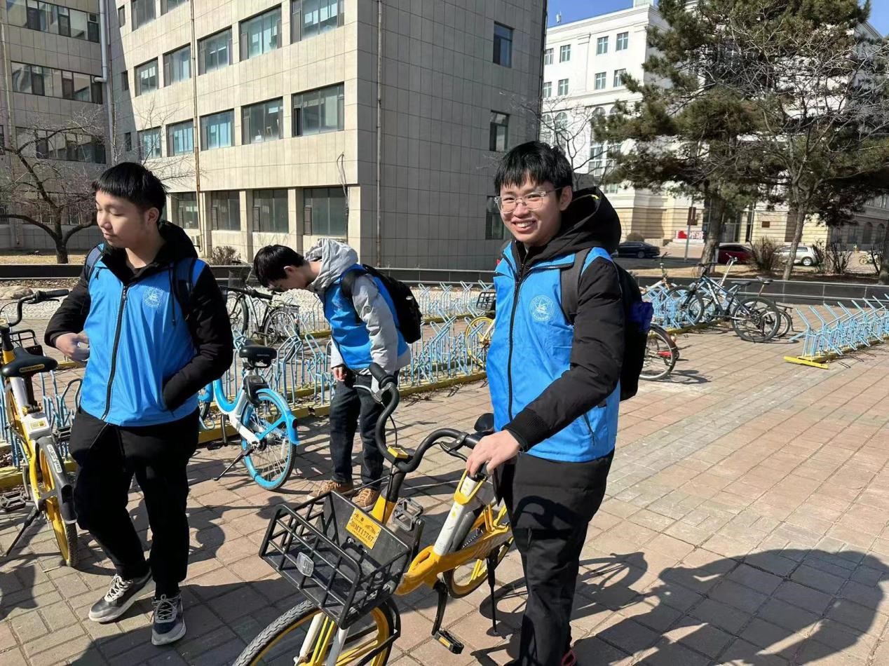 3月3日下午,同学们分成若干个志愿小组,在物理楼和逸夫楼前摆放共享单车,单车距离停放点距离遥远,同学采用手提的方式,将单车放回原处,并将单车内的垃圾带去,灰尘拂去,让干净整齐的小黄和小蓝成为动漫巴士