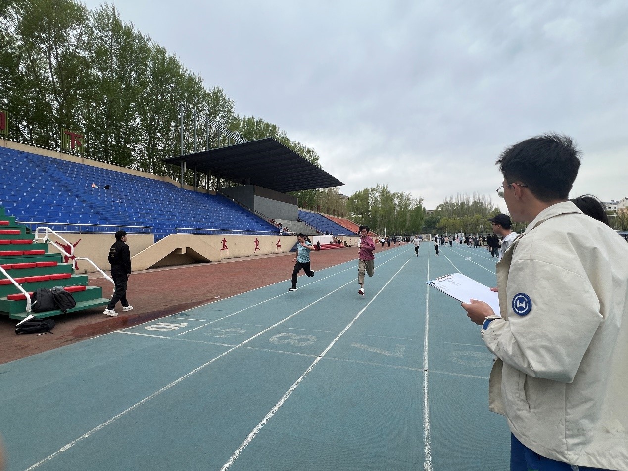 运动员们激情飞扬,奋力拼搏,赢得在场同学们一阵又一阵的欢呼与加油。运动会开始之前学院老师首先申明了“友谊第一,比赛第二” 的原则,就比赛安全事宜向同学们进行叮嘱。之后在学生会文体部成员的分组带领下根据100米、200米、400米、800米、1500米、300米、5000米、跳远、铅球等竞赛项目,篮球1分钟定点投篮、胶球掷远等大众项目分别举办了选拔赛。最终选出59人的代表队代表动漫巴士