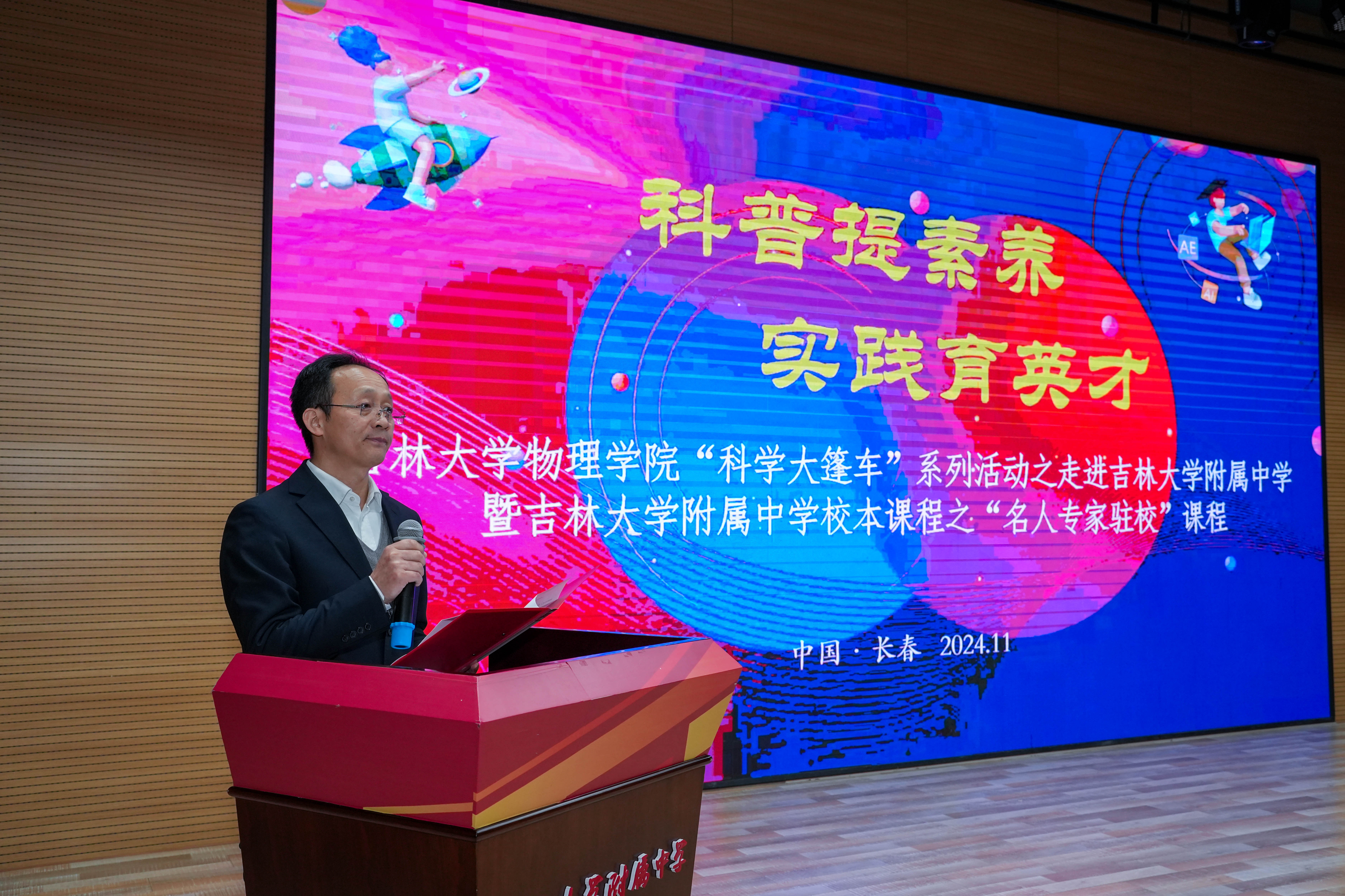 附属中学开展科普教育,同时举行实践教学合作签约、授牌仪式。动漫巴士