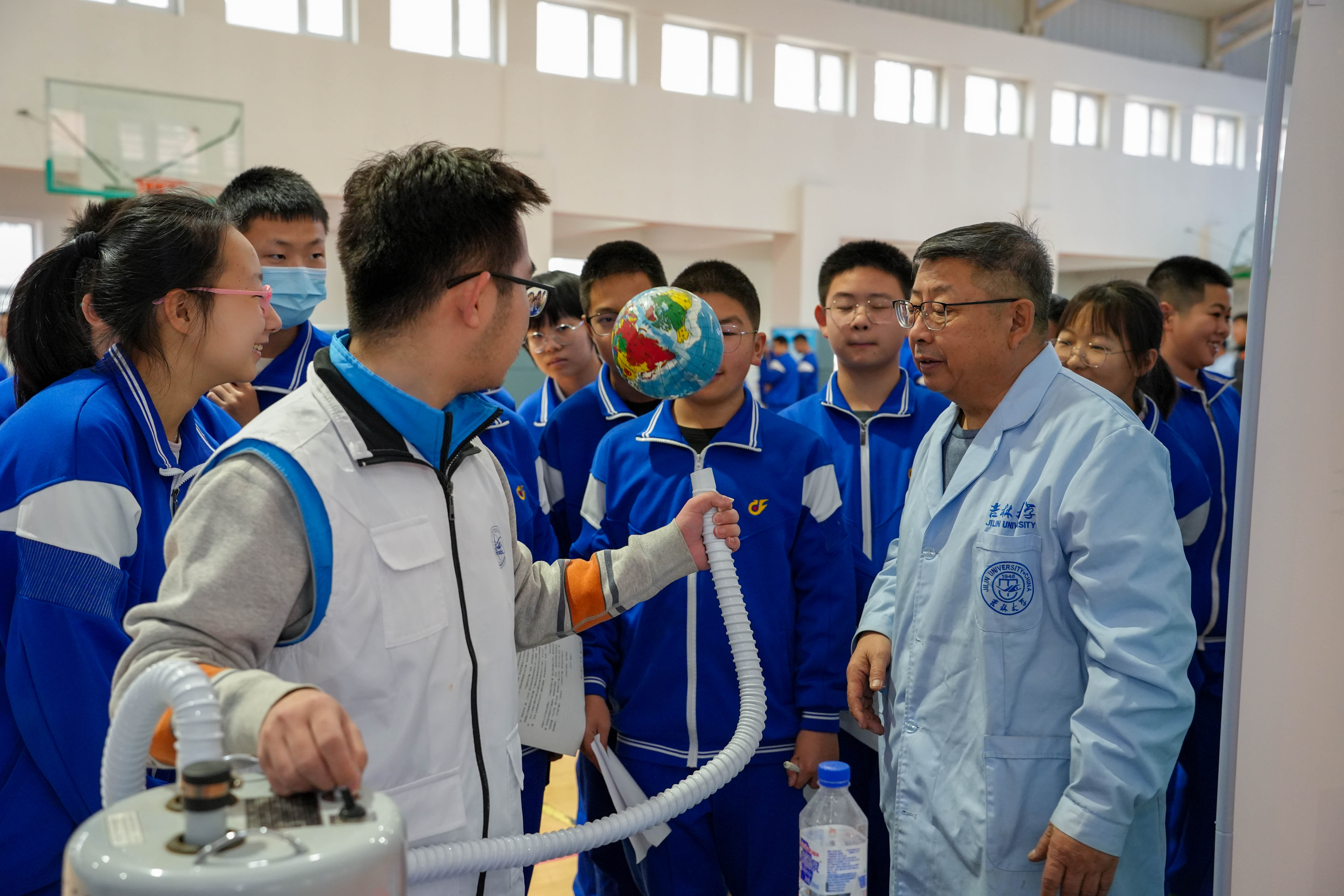 退休教师梁浩教授带领学院师生带着各种科学小实验走到中学生身边。首先梁老师为参加活动的志愿者讲解了各实验的原理和操作流程,过程中,同学们认真学习记录,在实践中感受物理的魅力,也在梁浩老师的影响下近距离感受到了吉大物理深厚的历史和吉大物理人的魅力。