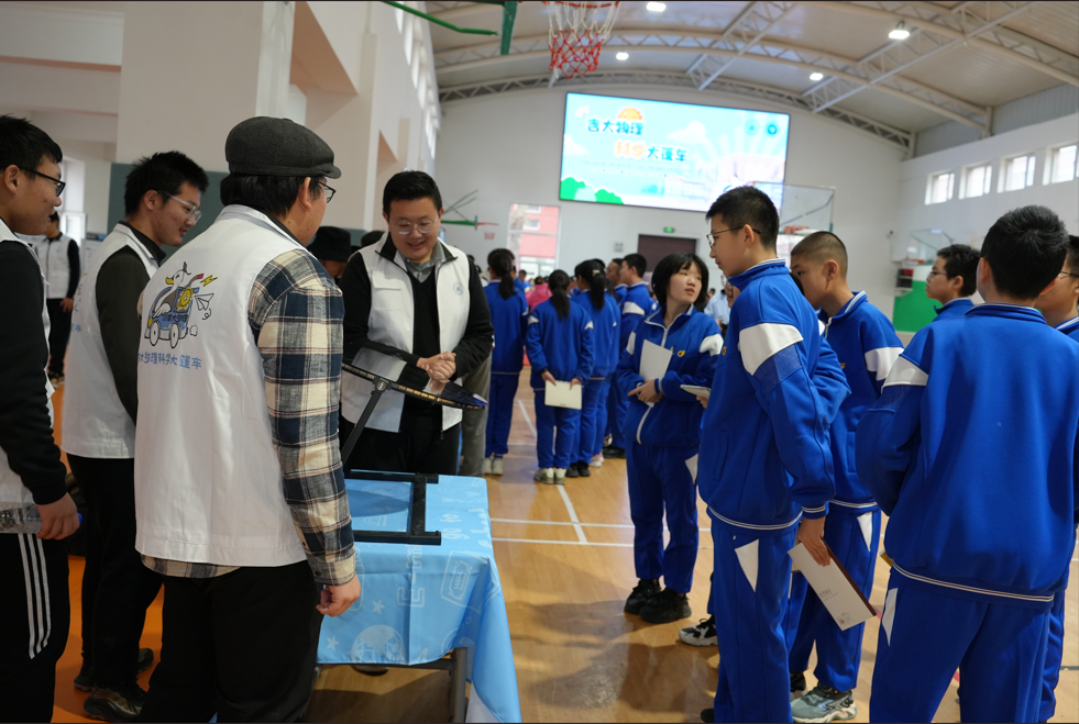 讲座结束后“科学大篷车”入校园科普活动正式开始,本次活动共有614名学生参加。活动出发前,动漫巴士
