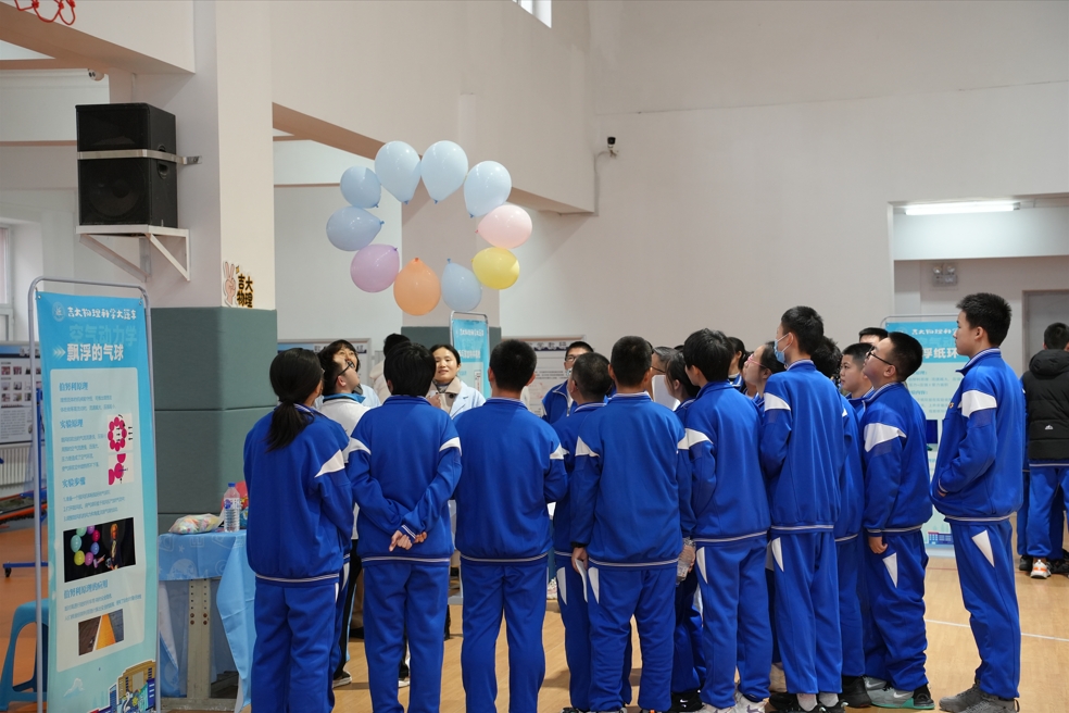 在科学实验展示环节共设置展示实验17项,有威力无穷的乒乓球加特林机枪;有一圈气球在空中自主旋转的飘浮的气球;有能让头发“炸毛”的怒发冲冠实验;有迅速结冰的极端低温实验(液氮);有孩子们最爱看的吹巨大泡泡的泡泡套圈实验;还有陀螺沿着斜坡行走、圆盘跳舞、茹科夫斯基椅、转动车轮、静电转轮、静电章鱼、磁体在金属管中下落实验、炫丽的泡泡干涉条纹、泡泡套、特殊形状观察泡泡表面张力、空气动力学伯努利原理、悬浮纸环、超导磁悬浮等等,这些有趣的实验都激发了学生浓厚的探究兴趣,同学们把一个个实验小组围得水泄不通,亲自尝试实验带来的魅力,在实验现场,同学们发出阵阵赞叹声,积极参与到实验中去。