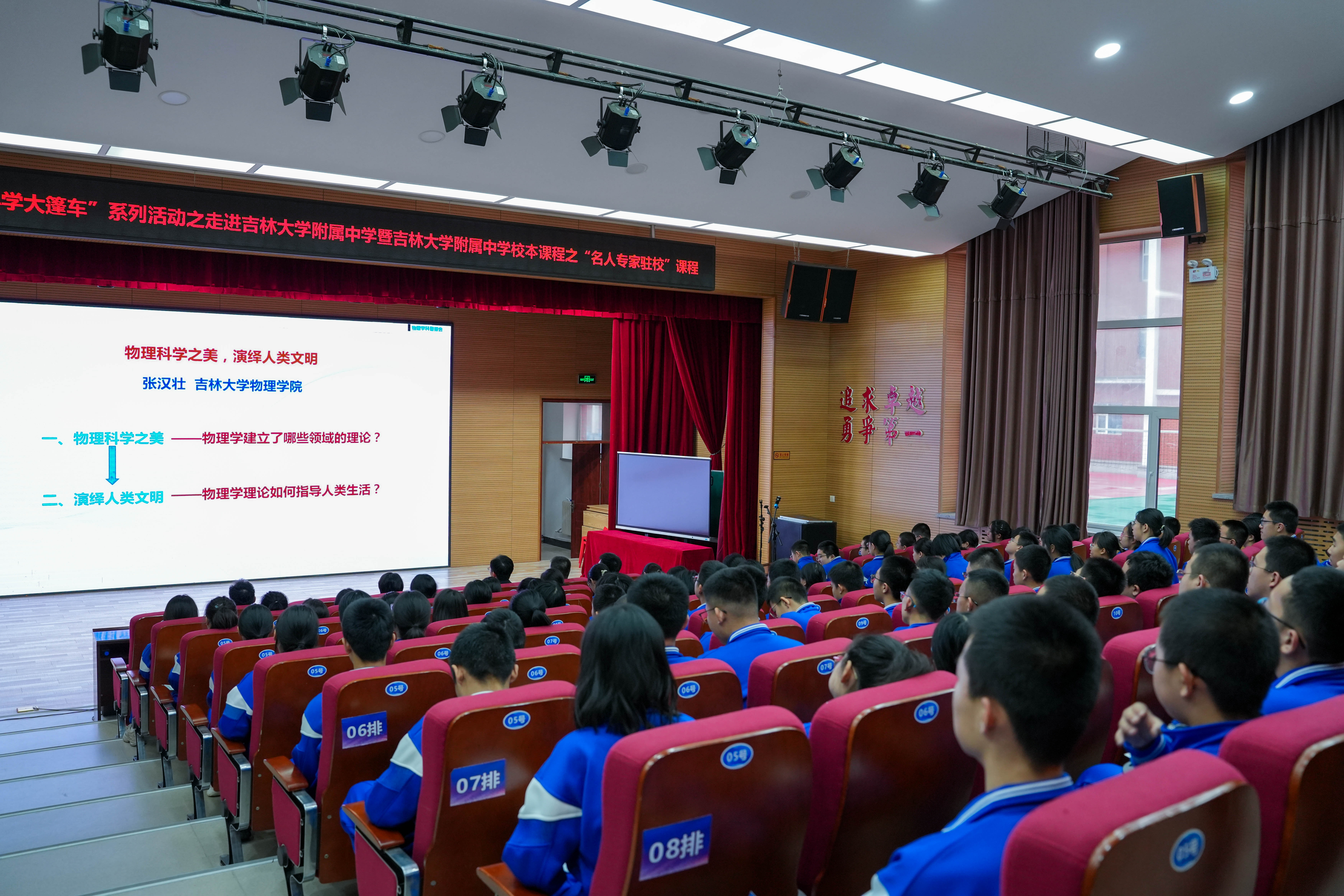 教学委员会主任委员张汉壮教授以《物理科学之美,演绎人类文明》为题为同学们上了一堂特别的物理科普课。张教授凭借其在物理领域的深厚造诣、卓越成就以及独特的教学魅力,以深入浅出、妙趣横生的讲解方式,将复杂晦涩的物理知识巧妙转化为生动形象、易于理解的科学盛宴,充分展现了其扎实的学识功底与渊博的知识储备。在讲座过程中,张教授不仅引领同学们尽情领略了物理科学的雄浑磅礴之美,深入感悟其在人类文明漫长演进历程中的中流砥柱作用,更点燃了同学们内心深处对物理科学的炽热热爱与无尽探索欲望。激励着同学们在科学的浩瀚星空中勇敢无畏地追寻真理之光,持续不断地提升自身科学素养与综合实践能力,为具有创新精神与实践能力的新时代杰出人才奠定坚实基础。